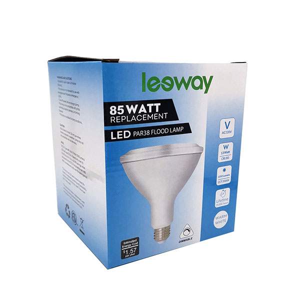 LED Par38 13W 90W equivalent Led Flood Light Bulbs is a direct replacement for indoor reflector bulbs . This energy-efficient dimmable product is instant-on, fully dimmable, has a bright white 3000K color temperature .